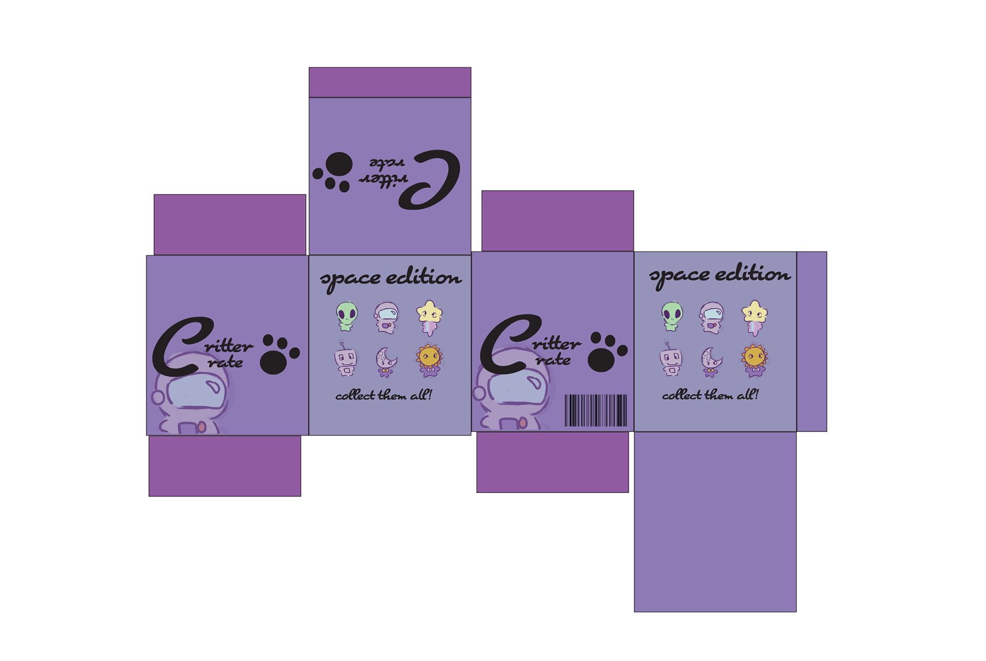 Design Brief: Critter Crate is a collectible blind-box product line centered on surprise and discovery. Our packaging design balances playful illustration with clear branding to ensure strong shelf appeal. Each box hints at the possible contents while preserving the excitement of mystery, encouraging collectors to return for additional purchases. The visual system was designed to scale easily across new characters and product waves, supporting long-term brand growth.